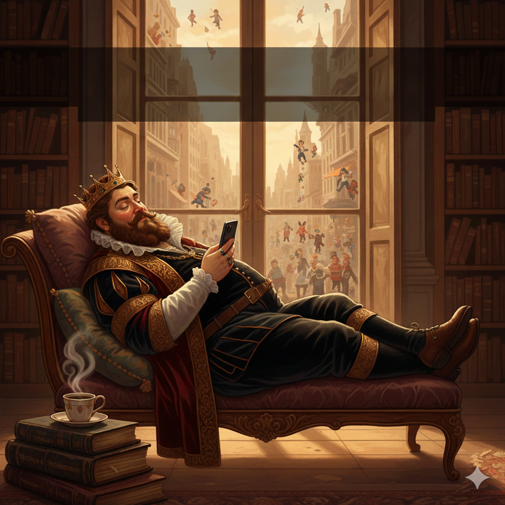 Diary of a Lazy Bum medieval book icon with crown and gold lettering
